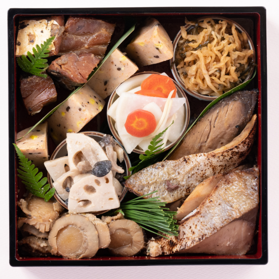 日本の風土から生まれた伝統的なおせち文化は、野菜を中心に据えたものでした。料理教室でもお伝えしている”重ね煮”の考え方を活かし、皮やアクも出来る限り捨てずに丸ごと使うことで、ビタミン、ミネラル、ポリフェノール類も余すことなくいただけるので、野菜本来の味わいを感じていただけることでしょう。できたてと変わらない味で食べていただけるよう、冷蔵でお届けします。